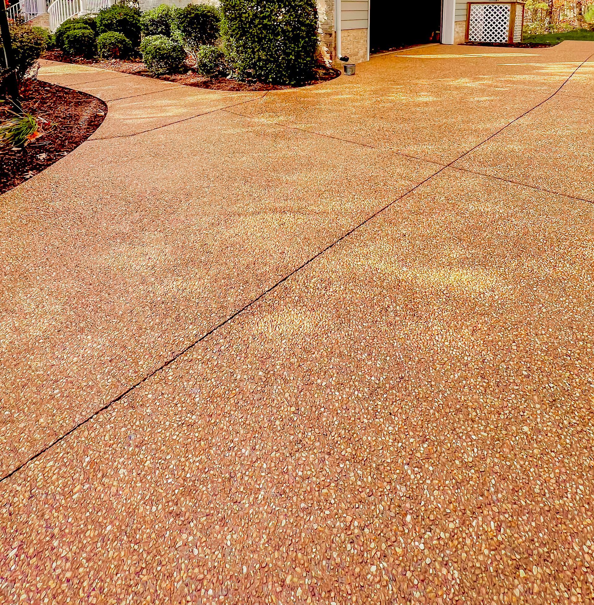 The stamped concrete is thoroughly pressure washed to prepare for the ultimate adhesion of sealer. Once the surface is dry, we repair any cracks, then we hand roll a premium concrete sealer to help protect the surface from weather and organic matter.